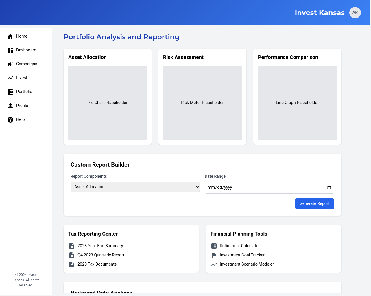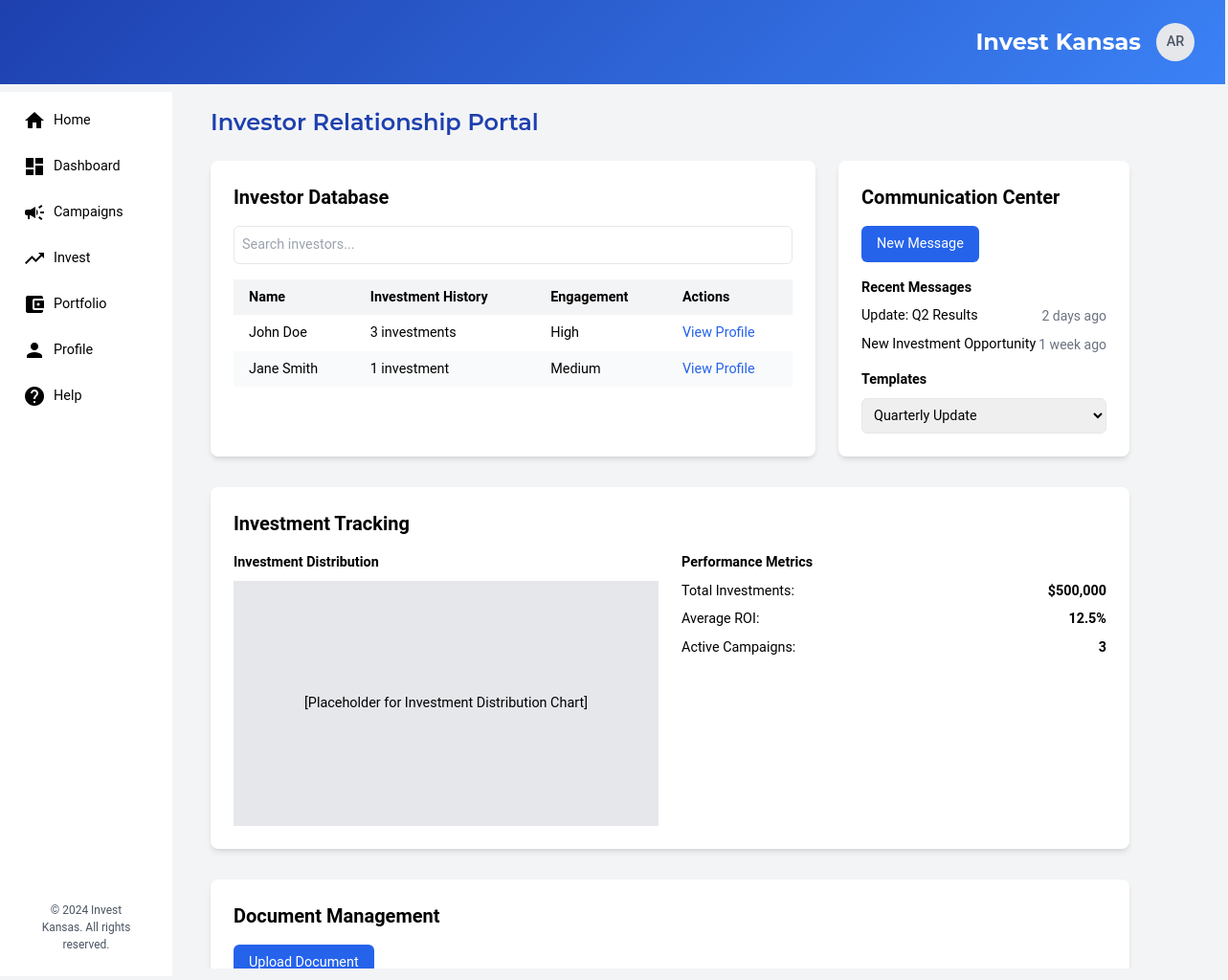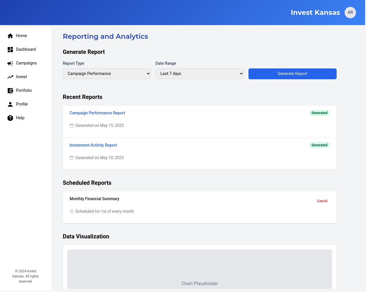- Provide downloadable reports for investment performance and campaign summaries.