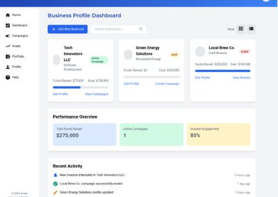 - Investor connection: A mechanism to effectively connect with potential investors, showcasing business profiles and campaigns to attract funding.